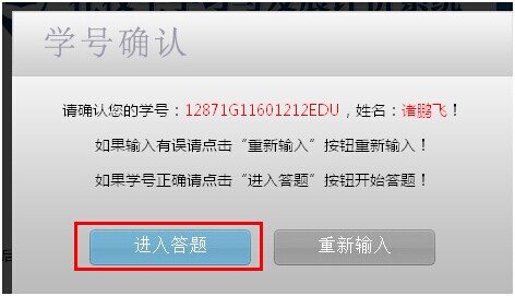 2.在上图方框处输入学号之后,点击右侧“开始答题”按钮,会弹出一个学号确认对话框,点击“进入答题”按钮,开始答题;